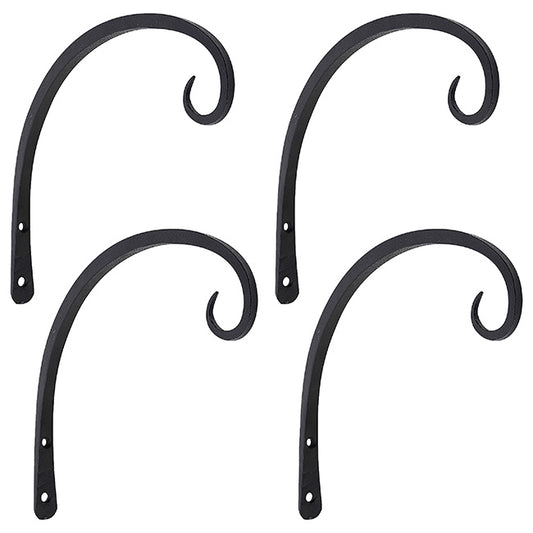 Achla Downcurled Wrought Iron Wall Hooks, Black, Pack of 4