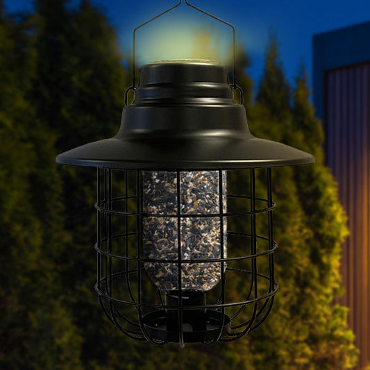 Modern Farmhouse Caged Bird Feeder & Solar Light w/ Seed Kit