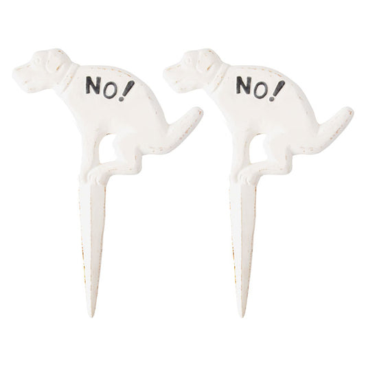Esschert Cast Iron "NO!" Pooping Yard Signs, White, 2 Pack