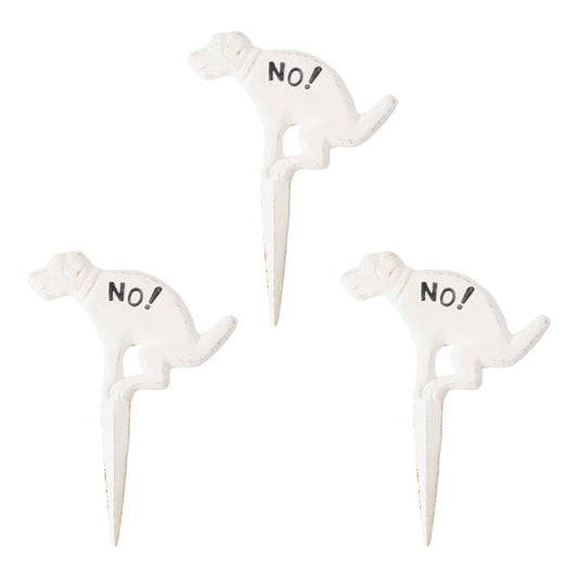 Esschert Design Cast Iron "NO!" Pooping Yard Sign, Wht, 3 Pk