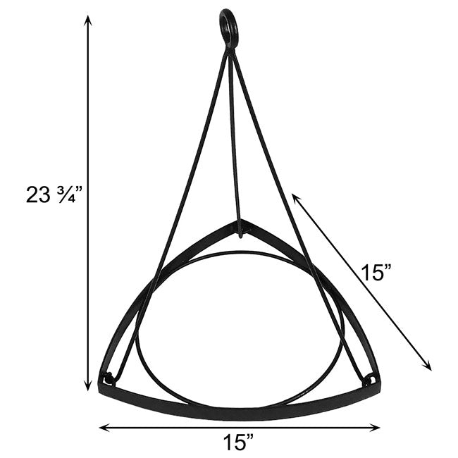 Artistically display several potted plants at once using these Achla Black Lina Contemporary Plant Hangers.  Suspending plants from hangers allows you to increase the greenery in your area, and this set of 4 pieces wonderfully unifies your patio or deck.  The triangular, wrought iron frames each hold a 12" diameter ring, perfect for supporting a pot with a slightly larger top opening.  Three pronged hangers attach to each frame, and their solid design ensures your pots remain level and lovely.  A top ring on each makes it simple to place the units on S hooks.  The black, powder coated finish on each wrought iron frame protects them from the elements, and the combination of round rods and rectangular slats enhances any setting.  Showcase your favorite pots and flowers easily using these Black Lina Contemporary Plant Hangers.