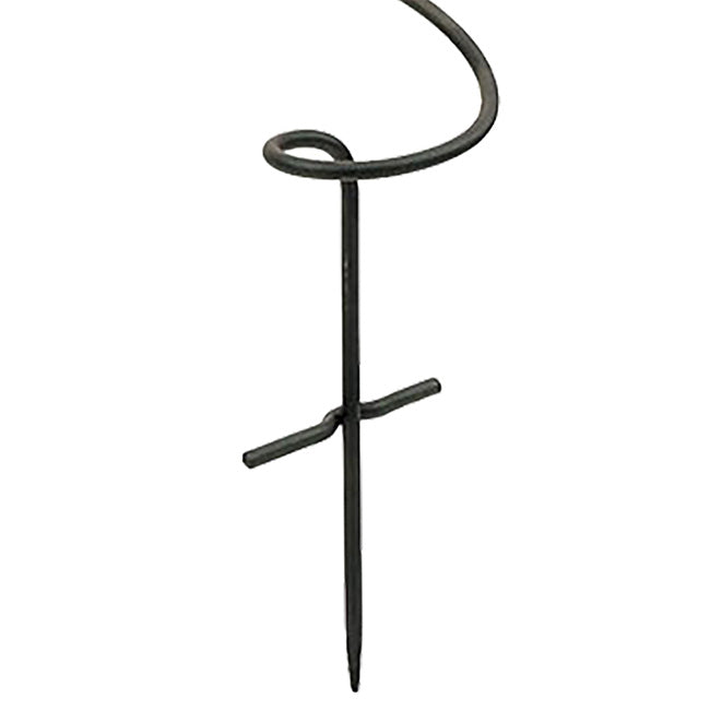 Offer whimsical support to a few of your favorite crops or flowers with these Achla Black Spiral Trellises.  This set of 3 spirals adds striking style to your garden, while bringing needed support to your peas or honeysuckle.  Each is crafted from hardy  wrought iron, and their black color adds a timeless finish.  The sturdy rod spirals upward, becoming smaller toward the top, and culminating in a leaf shape to enhance the theme.  A pointed, 5.25" long base rests beneath the 6.5" wide, horizontal rod, keeping the unit stable when inserted into your soil.  This also allows the spirals to be placed in pots greater than 7" in diameter, for growing fantastic indoor topiaries.  The powder coating on each unit protects it from the elements, while its bevy of curls easily supports climbing plants.  Lend a modern hint to your sunroom or garden with these Black Spiral Trellises.
