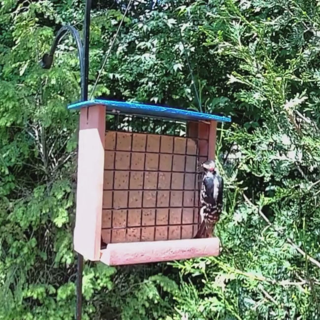 Offer an alternative meal to a variety of backyard birds while adding natural style to the garden using this premium quality, domestically sourced Amish Made Cedar Large Seed or Suet Cake Feeder.
