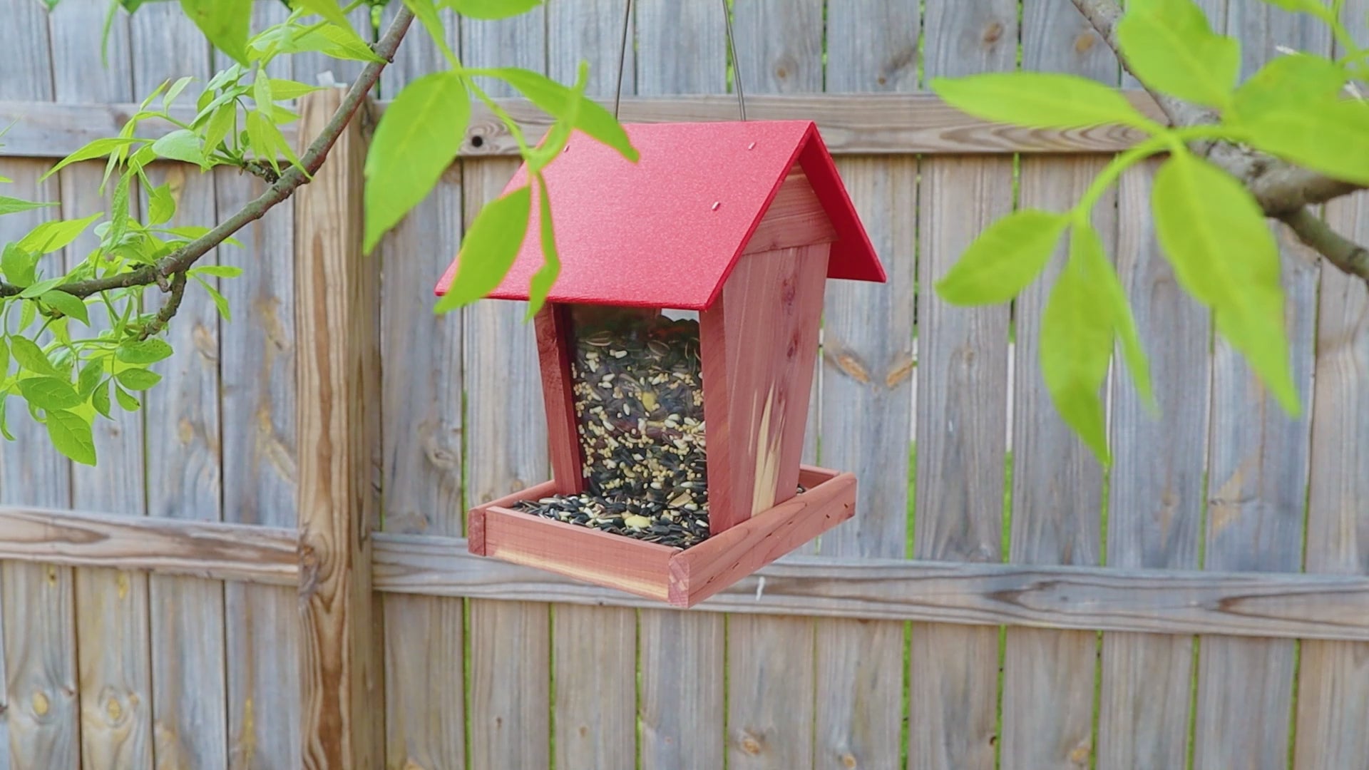 Amish Made Cedar & Recycled Plastic Hopper Feeder w/Red Roof