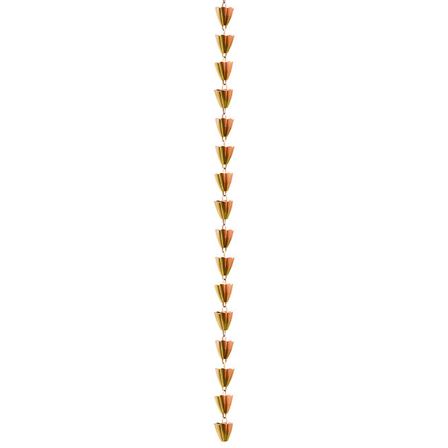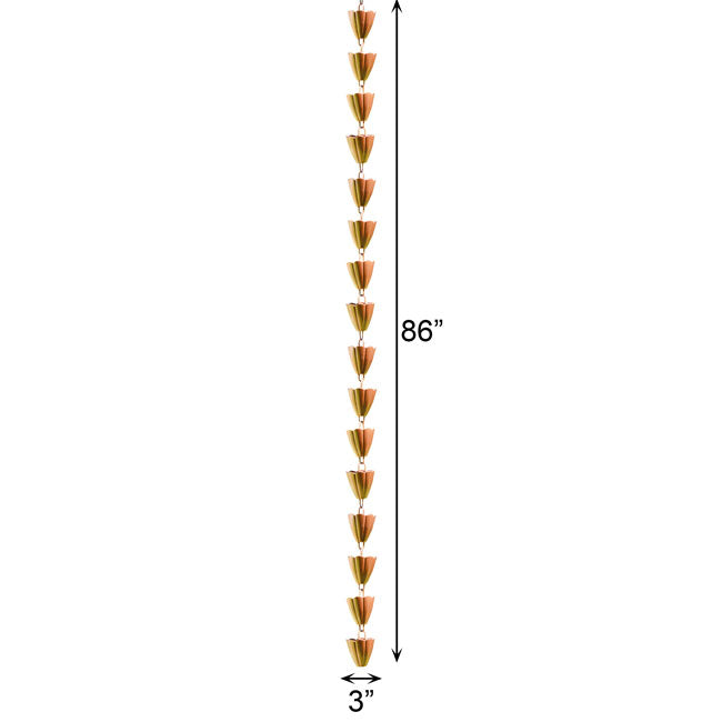 Use the power of rainwater to create an amazing display on four sides of your home with these Ancient Graffiti Scalloped Rain Chains. Rain chains originated in Japan centuries ago, and these lovely, modern units will provide a wonderful look on your home while helping direct rainwater. Fluted cups along a generous, approximately 86" long chain add a floral hint to the item, and the tapered shape of each cup offers a classic look. Use the included clip to attach each chain to the outlet at the end of your gutter, easily replacing your downspouts. As the rain gently cascades down the chains, it lends soothing sounds to your backyard, and the water may be collected in a basin or barrel for use in your garden. Remove links and cups from each chain as needed, to create a truly custom length for your home. The browned copper hue on each unit meshes with your home and landscaping, while the all steel body remains sturdy for many seasons. Add striking adornment to the corners of your home with these Scalloped Rain Chains.