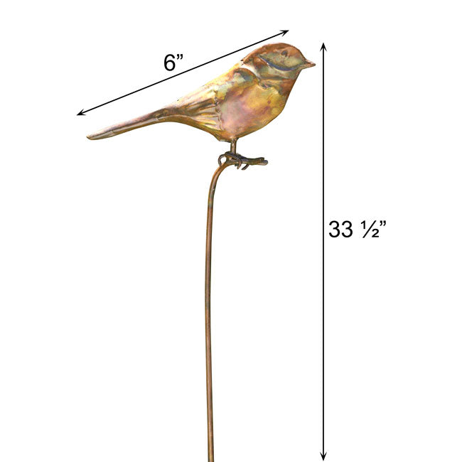 Qty 1 Ancient Graffiti Staked Bird Garden Ornament, Flamed Copper