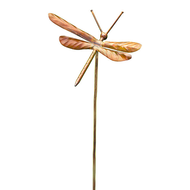Qty 1 Ancient Graffiti Staked Dragonfly Garden Ornament, Flamed Copper