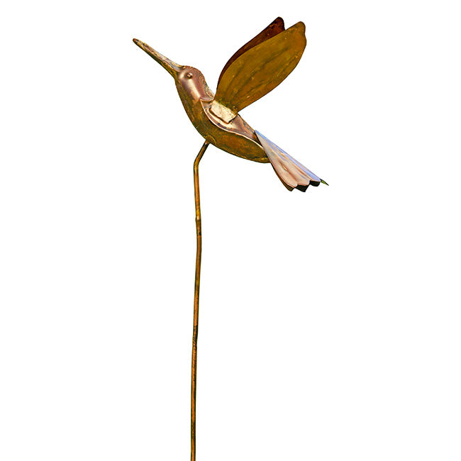 Qty 1 Ancient Graffiti Staked Hummingbird Garden Ornament, Flamed Copper