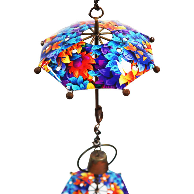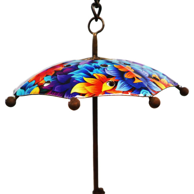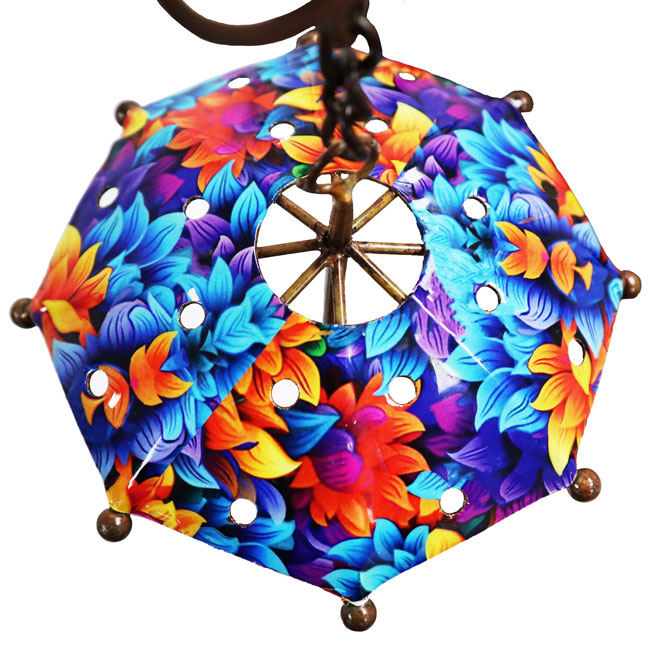 - An aqua, violet, orange, and fuchsia floral pattern on each umbrella shape adds brightness and bold style to these chains