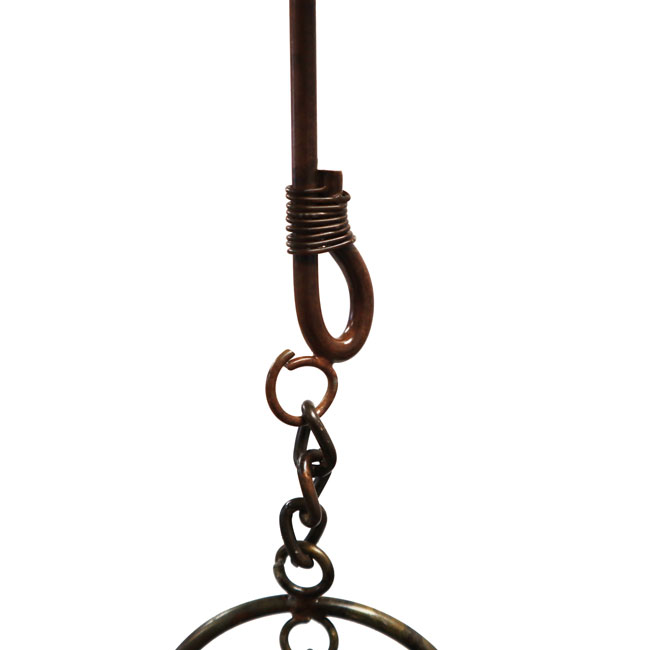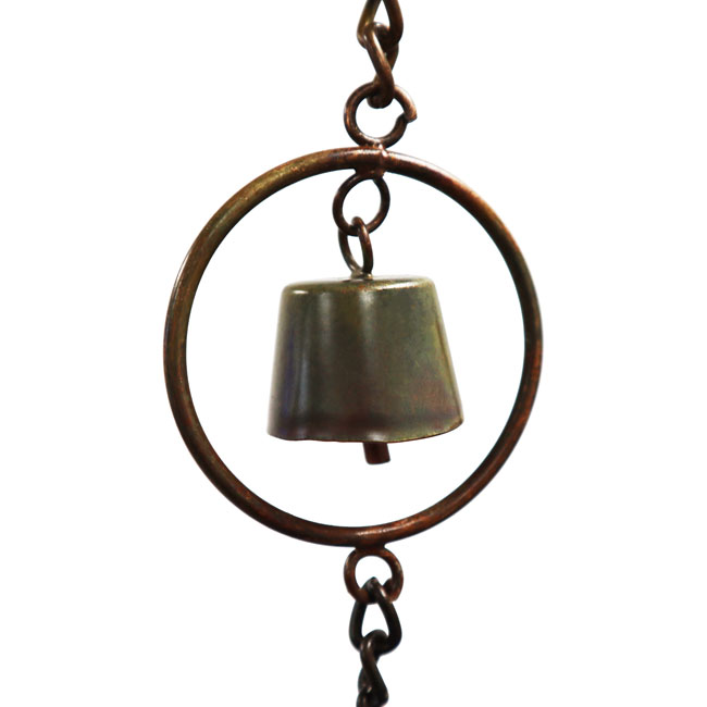- Copper colored, metal bells and chain links contrast the vivid covers