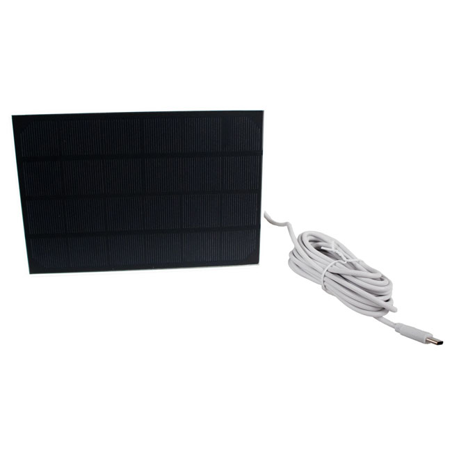 - Solar panel has a 360° mounting bracket that can affix to a wall or table, allowing the panel to be angled for absorbing the maximum amount of daily sunlight