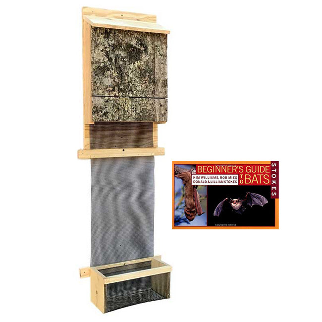Create a safe and welcoming haven for bats in your yard using this BestNest Triple Chamber Bat House and Pup Safety Net Kit. This kit provides plenty of roosting area for bats, while also preventing bat pups from falling to the ground. The generous shelter accommodates up to 300 bats, and the three separate chambers allow them to naturally separate into nursery and bachelor colonies. Routed horizontal lines in each chamber provides clinging spots, and the extended landing platform makes it simple for bats to reach the home. Attach the included safety net to this base platform to create a safe nursery spot for these pollinators. The wooden frame supports a polyethylene mesh basket, which captures any bat pups that may lose their grip and fall. The mesh creates a soft landing spot for them, and the netting aids them in climbing back into the shelter. A bark overlay on the front of the bat house brings natural style to any setting, and predrilled holes on the top of it make installation simple. The wooden construction ensures a warm and durable abode, and a ventilation gap across the front panel prevents the bats from overheating. Read through the included bat book for in-depth information on these wonderful animals. Offer several bats a safe nesting area by placing this Triple Chamber Bat House and Pup Safety Net Kit on your home. House and net made in the USA.