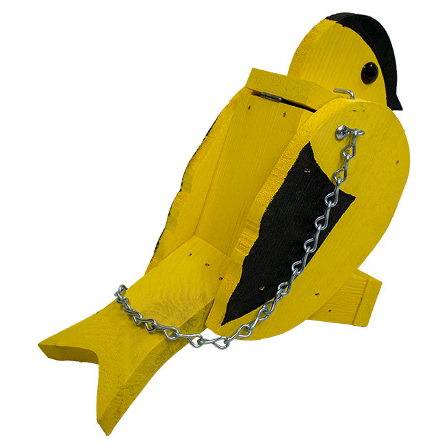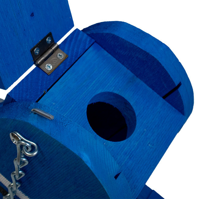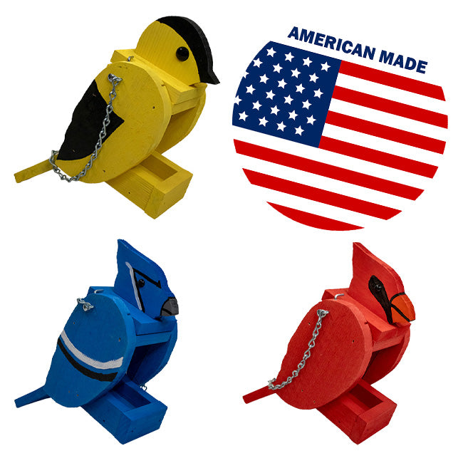 - Precisely cut wooden panels combine to form each head, wing, and tail shape, while the vibrant and eye-catching tones give each feeder a standout appearance.
