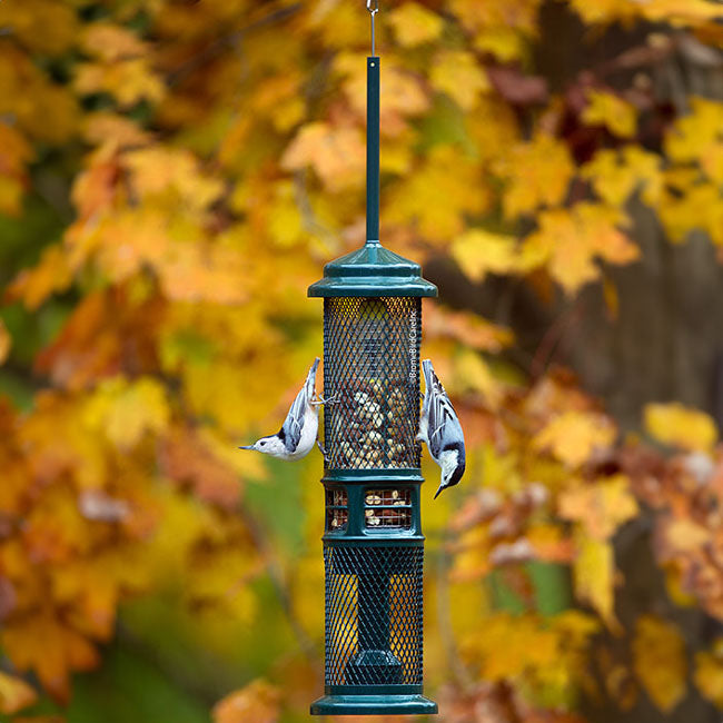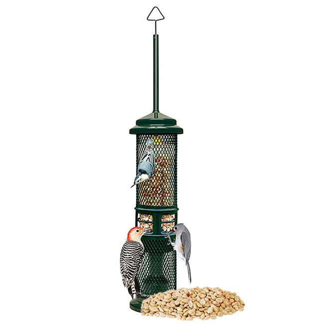 Invite birds to the garden with a delicious snack while keeping squirrels at bay with this Brome Squirrel Buster Nut Feeder with Peanut Splits Package by Prime Retreat.