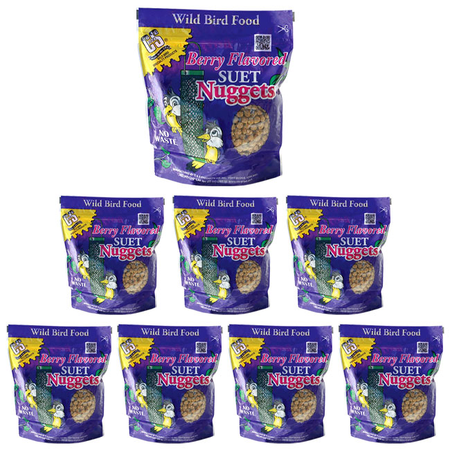 Note: This case pack contains 8 bags of the C&S Berry Flavored Suet Nuggets, 27 ounces each.