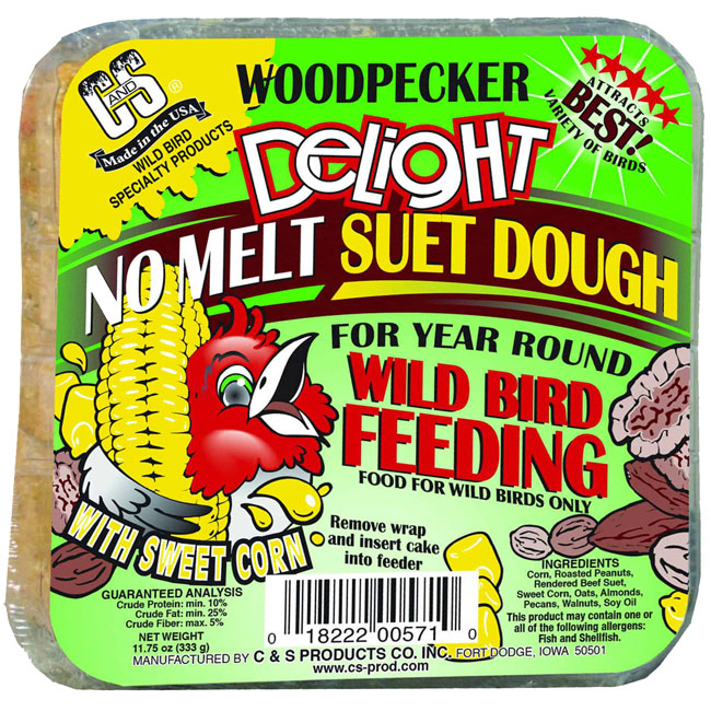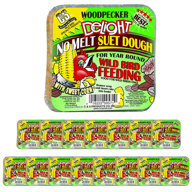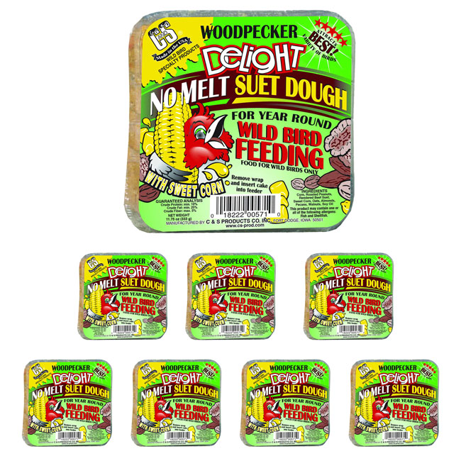 Note: This case pack contains 8 of the C&S Woodpecker Delight No Melt Suet Dough cakes, 11.75 oz. each.