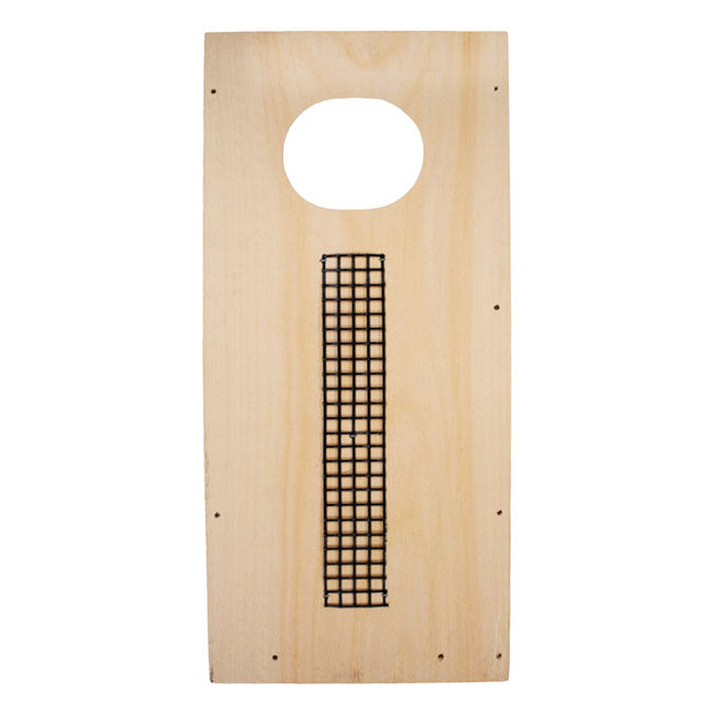 Offer specific ducks a safe and comfortable home with this fantastic Coveside Common Merganser Duck House. These dramatic ducks, with their black and white back, green head, and bold red bill offer an enchanting addition to your lakeside locale. Cavity nesting ducks are often dependent upon manmade housing for their roost, as they cannot excavate a cavity in trees like other birds. This home offers the perfect shelter for mergansers, with a slanted roof significantly overhanging the dwelling to prevent rain from entering the home, while ventilation slots on either side of the roof keep the interior temperature adequately regulated. Angled corners and a recessed bottom at the base of the home offer drainage to the nest, keeping it comfortable and dry. The 3.75" high, 4.75" wide entrance hole allows only the ducks to enter, and the absence of a perch enables a clear and safe entryway, serving to prevent predators from reaching the eggs. A ladder underneath the door inside the box aids nestlings in exiting the house when called by the mother, and the included bag of wood chips offers additional insulation and nesting material for the birds. One side panel opens in two sections, one to clean the nest and another for observation, and both close securely with metal latches. The 0.75" thick, wooden panels help insulate the home, while the light color of the unfinished pine keeps it cool in the summer. This sustainably sourced, eastern pine will age to a graceful gray color over time and with exposure to the elements, enhancing its natural beauty. A metal hanger at the top of the item allows it to be post or tree mounted with ease. Provide safe and ideal housing for the merganser population in your area with this Common Merganser Duck House. Some assembly required. Made in the USA.