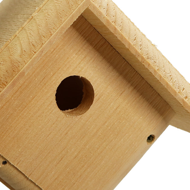 Give wrens in your backyard a comfortable and safe shelter with this Coveside Hanging Wren House. Wrens, unlike most other birds, do not mind the gentle motion of a hanging bird house, making this compact, suspended shelter an ideal dwelling for these small feathered friends. This handsome nest box is sustainably harvested and constructed from old eastern pine to create a striking and environmentally friendly item, and the 1" entryway allows easy access for wrens while keeping out larger birds and other predators. The abode sports drainage holes in the bottom corners to keep the nest dry and clean, while a ventilation slot situated beneath the pitched roof line maintains the house at an optimal temperature. The rough hewn wood lends fledglings a safe and secure foothold for when it's time to climb out and leave the nest, and the lack of a perch near the hole further discourages predation. One side of the nest box opens easily for observation and seasonal maintenance, while the included hanging chain lets you showcase this charming dwelling in your bird sanctuary with ease. Enjoy the activity of wrens while providing them a safe haven with this Hanging Wren House. Made in the USA.
