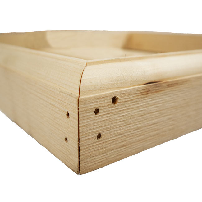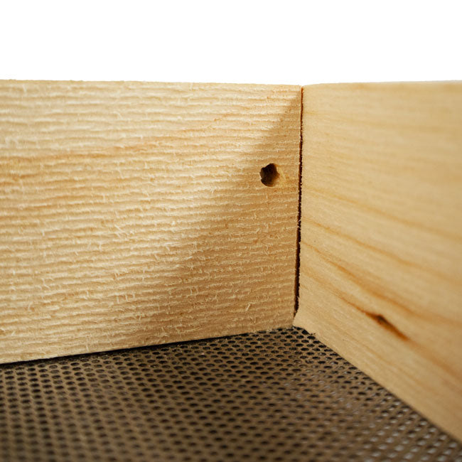 - Generous, 19.5" square pine frame with two sections of perforated screen and a center, 5.5" wide support slat