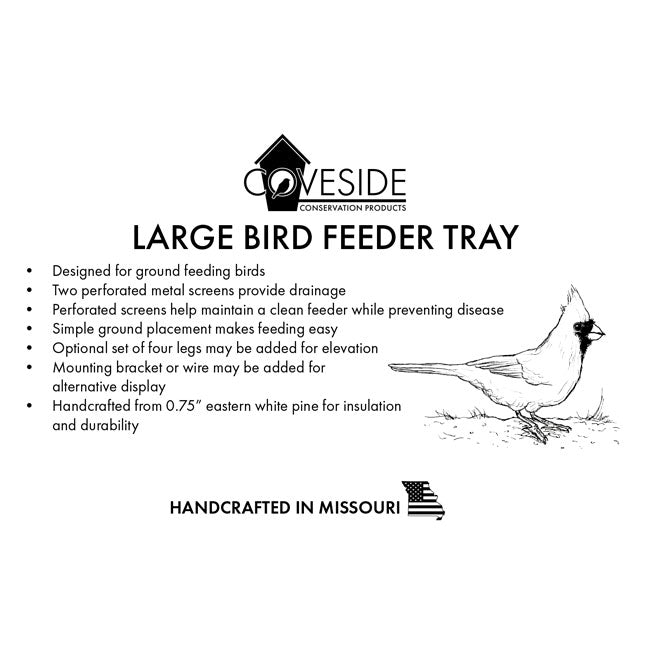 - Platform holds 2.5 quarts of mixed seed, fruit, suet, mealworms, or other treats for a variety of wildlife