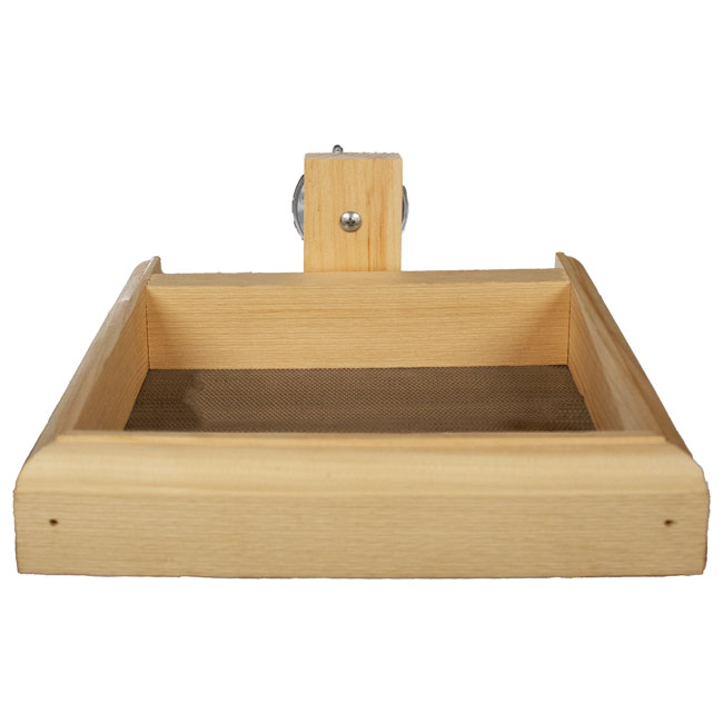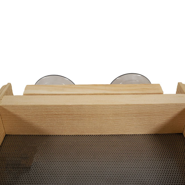 - Classic, pine frame with metal screen base forms a traditional feeder.