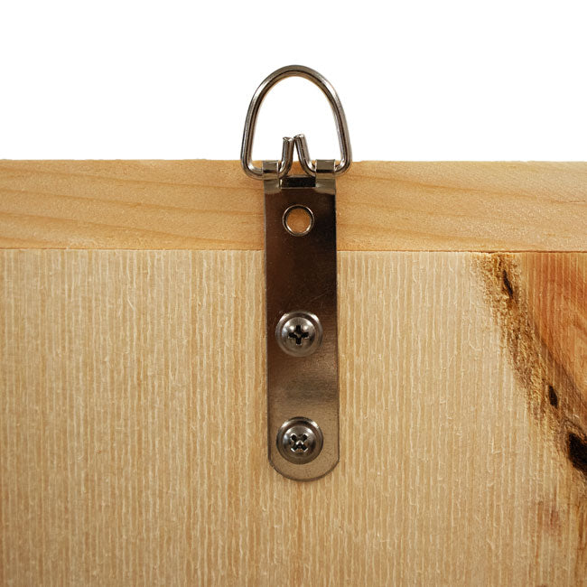 Offer a plethora of bats a comfortable and safe shelter in your backyard with this Coveside Small Sunshine's Bat House. This dwelling's shape has been field tested and proven as a viable roost design for these insectivorous creatures. The generous shelter holds up to 100 bats in its two large chambers, allowing an abundance of inhabitants to populate the unit. Made of aged eastern pine and sustainably sourced by a family owned mill, this staunch and eco-conscious home provides a fabulous showcase while promoting insect control. The open slot at the bottom of this naturally appealing habitat is protected by a slanted wooden guard to discourage predation, while the interior surface and landing platform are made of rough hewn wood covered with black screening to allow bats to easily cling, land, and roost. An echolocation slot is situated on each side of the home to assist bats in locating it, and this habitat is highly successful in attracting little brown and big brown bats, while also accommodating all species of small, insectivorous bats throughout North America. This convenient unit sports a metal hanger to allow for easy mounting to a tree or building, and its natural hue will weather to a graceful gray tone with continued outdoor exposure to give you a dynamic showcase. House a surplus of helpful and interesting bats in your area with the Small Sunshine's Bat House. Made in the USA.