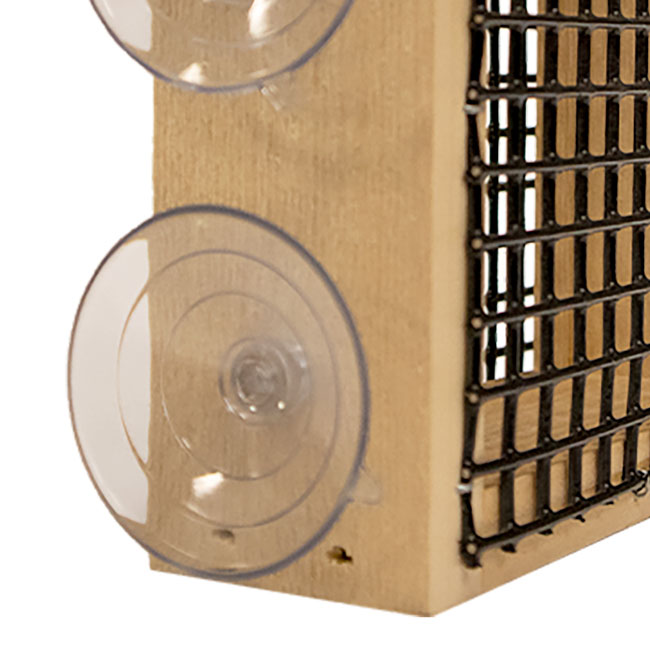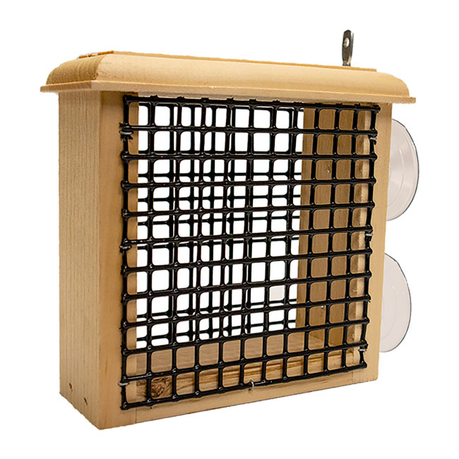 Make observing birds feeding a part of your daily routine with this Coveside Window Suet Feeder. This compact, straightforward suet feeder readily affixes to a window, encouraging your feathered friends to dine near you. The traditional, white pine frame creates a rustic and robust feeder, while a vinyl coated, black metal mesh completes the unit. This 0.375" square grid not only provides a variety of clinging spots for select birds; it also keeps a suet or seed cake nicely in place while allowing birds to dine. The roof sports a slightly rounded edge and overhang, directing water away from the chamber, and a generous screw here may be removed for swiveling this panel and refilling the reservoir. Dual suction cups aid in affixing the feeder to a window in moments, and the compact shape keeps the rest of your yard visible. The yellow hue of the untreated pine ages wonderfully to a gray tone, and the vinyl coating on the grid makes it easy to clean and maintain. Easily monitor bird feeding behaviors from the comfort of home when you add this Window Suet Feeder to your window. Made in the USA.