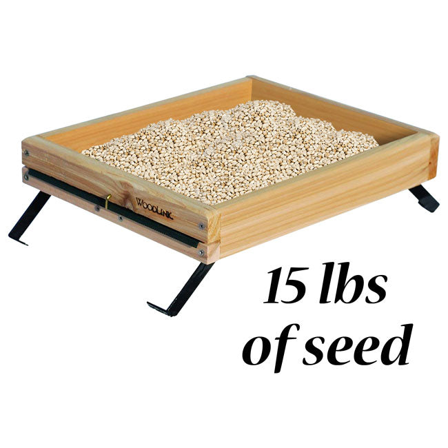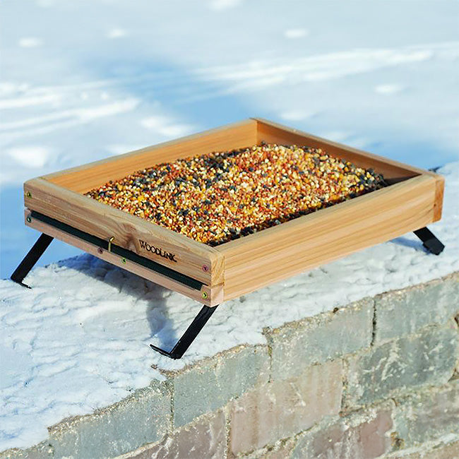 Supply ground feeding birds a unique dining spot with this Dove Feeding Package with Tray Feeder and Safflower Seed. Non migratory doves and pigeons are often welcome visitors in bird gardens, and this bundle is a fantastic way to selectively feed them. Extend the legs of the included Woodlink 3 in 1 Platform Feeder outward, and rest this item on the ground. Situating it beneath an existing hanging feeder often helps attract these birds, while capturing some tossed seed for less yard waste. Add 3.6 quarts of the included safflower seed to this generous reservoir, which has a screened metal base for drainage and air circulation. Slide this screen out of the wooden frame periodically for thorough cleaning, and add fruit or other treats to keep your feathered friends well-fed. The four metal legs make it simple to rest this unit on the ground or your deck, perfect for enticing ground feeding birds to it. Crafted from sturdy wood and metal, this feeder will certainly provide many seasons of service, and the included safflower seed is a known favorite of quail, pigeons, and doves. Invite select ground feeding birds to your yard with this Dove Feeding Package with Tray Feeder and Safflower Seed.