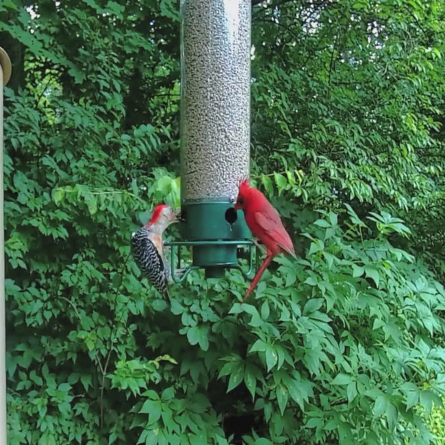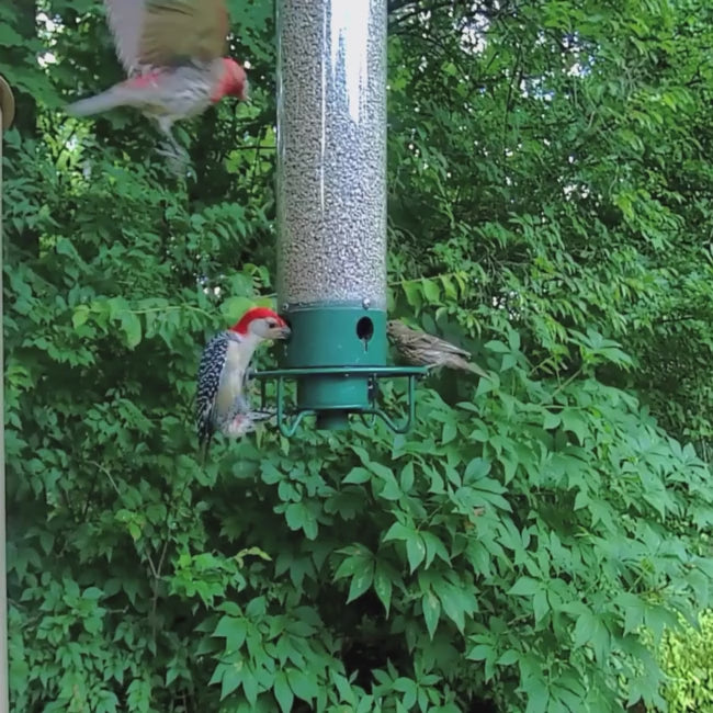 Confound squirrels and offer seed to double the birds with these Droll Yankees Yankee Flipper Squirrel Proof Bird Feeders. These 2, fantastically popular feeders perfectly anchor your bird garden, while holding plenty of mixed seed for your feathered friends. Each lengthy, UV stabilized reservoir holds 3.33 quarts of mixed seed, with 4 ports and a perch ring at its base. These rings react dramatically to the weight of a gray squirrel, providing you hours of outdoor entertainment. Once a large squirrel or bird puts its full weight on the perch, an internal motor spins it, flipping the animal off of the feeder. The hardy, die cast metal construction of these bases and perch rings matches that of each cap, and their deep green, powder coated finish adds longevity. These snug caps keep the seed protected from rain, and the powerstick inside each reservoir acts as a diverter, directing feed to the ports. The extra long feeding tubes also prevent squirrels from hanging on the lids and grabbing seed, and the clear polycarbonate bodies keep feed levels visible easily. An on/off switch at the base of each unit allows you to operate them only when desired, and an included AC adapter makes recharging the mechanisms simple. This multitude of features has made these Yankee Flippers classic, durable, and favorite additions to bird gardens everywhere. A robust looped, stainless steel top wire on each makes hanging the pieces simple, offering stability and security. Discourage squirrels from dining while adding some fun to your backyard with these 2 Yankee Flipper Squirrel Proof Bird Feeders. Two year limited warranty on feeders. One year limited warranty on motors and batteries.