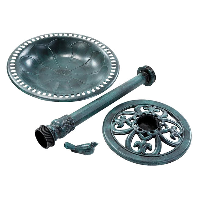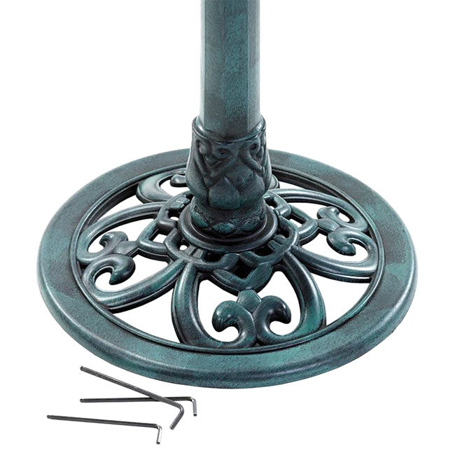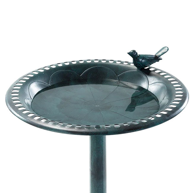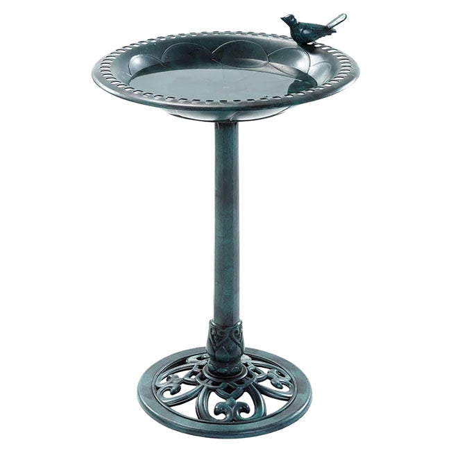 - Standing bird bath adds a distinguished, natural patina appearance to the yard