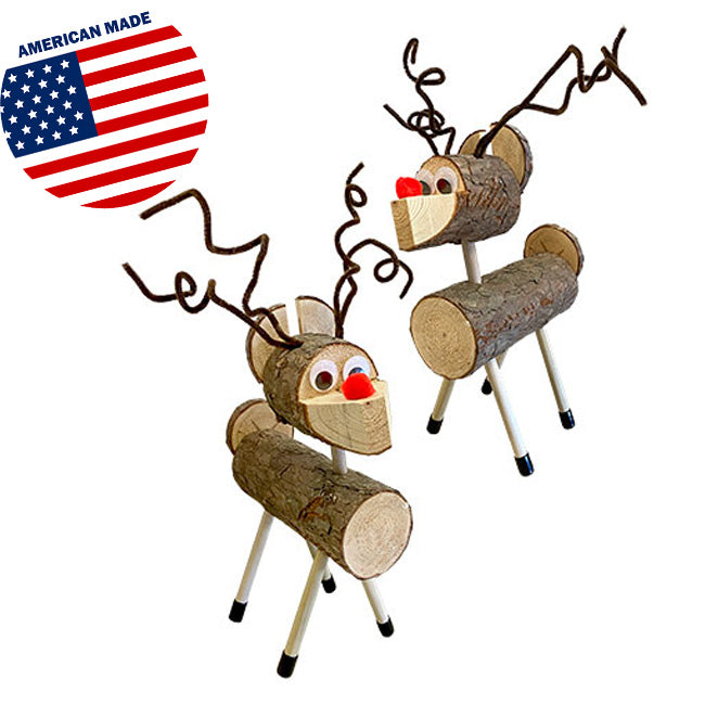 Bring your family together for a seasonal craft night with these handmade EZ-DIY Cedar Reindeer Statues by Prime Retreat. These 2 kits wonderfully transform cedar logs and wooden dowels into 2 charming, familiar reindeer figures, adding Christmas cheer to your setting in moments. Predrilled holes in each log easily accommodate the wooden dowels, which act as legs and a neck. Unique cuts and a red pom on a smaller piece of cedar begins each statue's face, and a flat section on the front provides spots to affix the included googly eyes. The smaller cedar discs create ears, and your kids will love bending the pipe cleaners into antler shapes. A short dowel acts as a neck, elevating this section above the body for a recognizable reindeer. Plastic caps on each lower dowel form hooves, and the legs extend outward at an angle for stability. The cedar construction offers longevity, and the distinctive aroma of these 2 accents fills your entryway with a welcoming hint. The statues look great on each side of your front door, flanking your tree or fireplace, or even as centerpieces on your holiday table. Each figure disassembles easily at the end of the season and stores in its compact shipping box, while the cedar body remains robust for use again and again. The predrilled holes and precut pieces make assembling these characters a great craft for children, and is a perfect way to spend some quality family time. Add a beloved Christmas personality to 2 places in your home or yard with these EZ-DIY Cedar Reindeer Statues. Quick, 5 minute assembly required. Made in the USA.