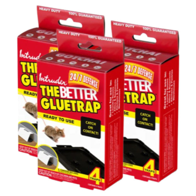 Note: This case pack contains 3 of the Intruder The Better Gluetraps™ with Canopies, Pack of 4, for 12 traps total.