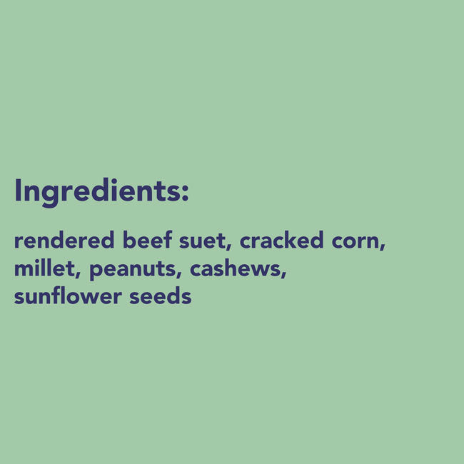 - Mixed seed pieces within the suet appeal to a variety of songbirds.