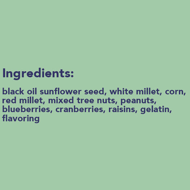 - Sunflower seed, corn, tree nuts, blueberries, and raisins all combine in each block to give birds a wealth of different tastes.