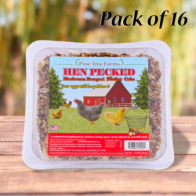 Note: This case pack contains 16 of the Pine Tree Farms Hen Pecked Mealworm Banquet Poultry Cakes.
