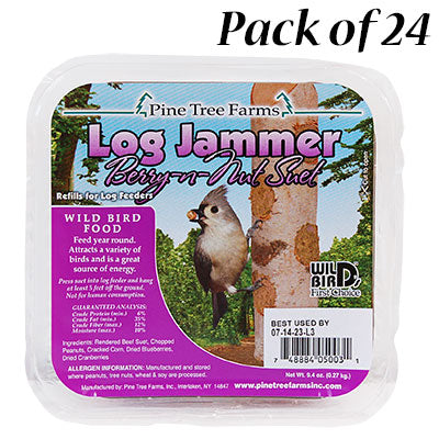 Note: This case pack contains 24 3-packs of the Pine Tree Farms Log Jammer Berry-N-Nut Suet Plugs.