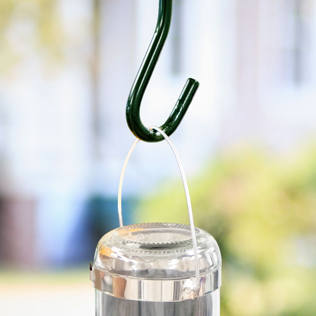 - Extended, arched hanger lets you place the feeder over a 5" diameter or smaller branch.