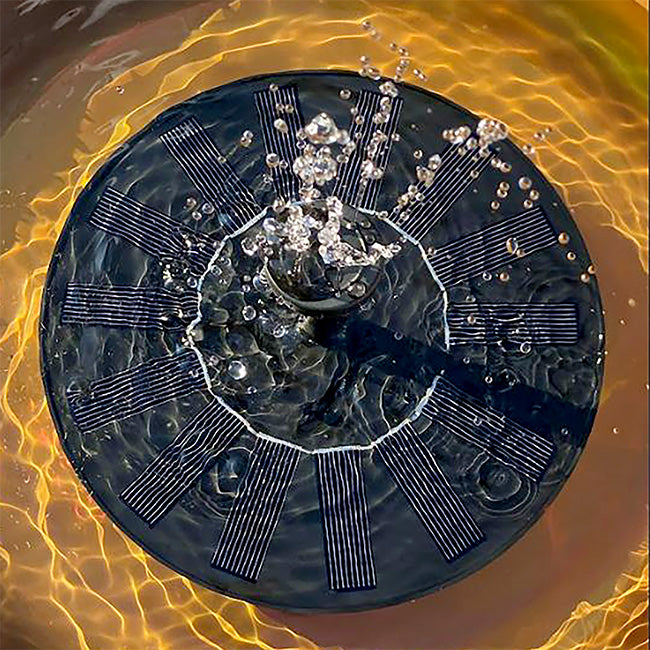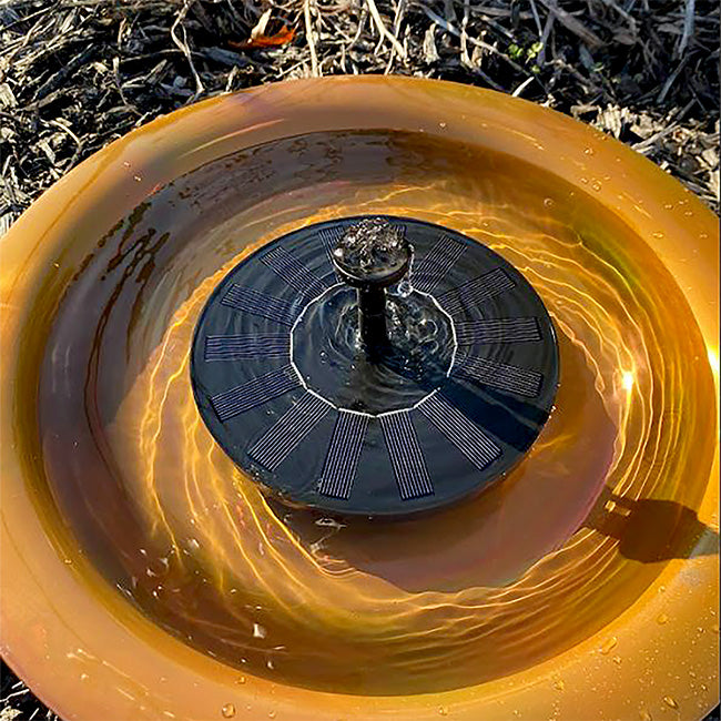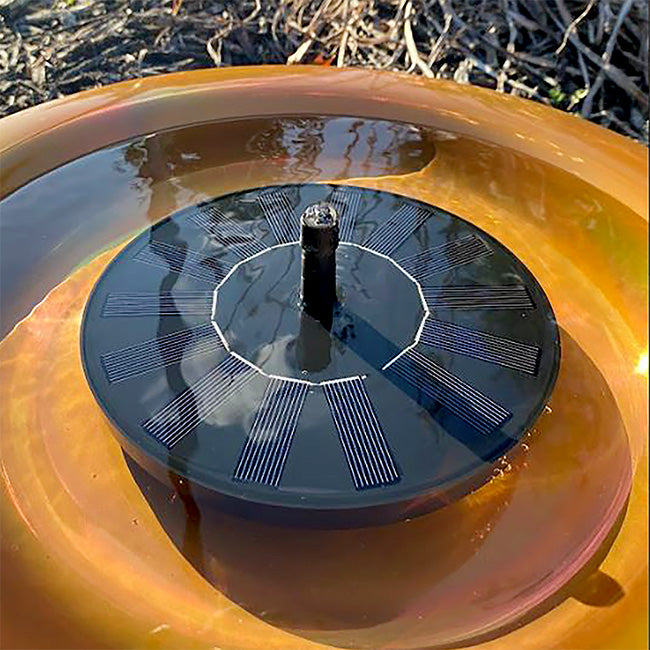 - Classic, 6.5" diameter solar panel has a pump attached to its base, and this assembly is simple to center in the bowl.