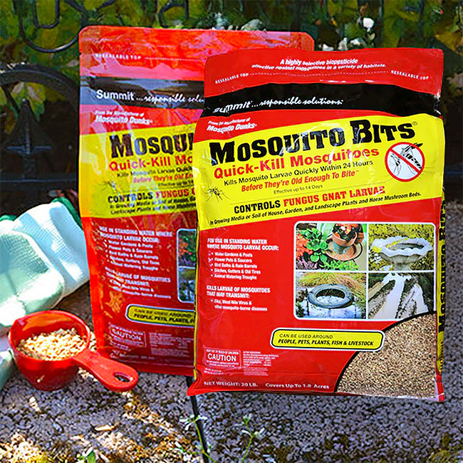 Note: This case pack contains 2 of the Summit Quick Kill Larvicide Mosquito Bits® bags, 20 lbs. each.