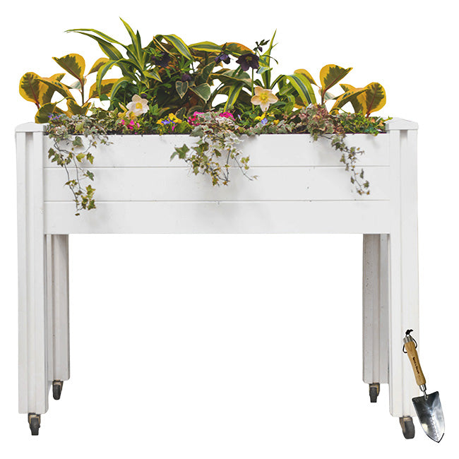 Provide your crops an ideal amount of sunlight and maintain them with ease using the Sunseeker Raised Garden Bed and Trowel kit by Prime Retreat. The durable Vita Gardens Sunseeker Raised Garden Bed with Casters lends you a perfect receptacle to grow and display several vegetables or ornamentals, with casters on the base allowing for easy portability. Showcase your plants in charming fashion in the classic, rectangular box by placing it on a flat, level surface, and utilize its durable, food grade, white PVC body for long lasting reliability. Fill the unit with potting soil and dig in with the included Gardman Capability Trowel by Kent and Stowe, using the stainless steel blade’s pointed base and beveled, slightly sharpened edge to help with your planting and maintenance. Use the engraved gauge on the trowel to measure and ensure accurate planting, while the contoured, ash handle makes for a handsome and comfortable grip while working. Display your crops by placing this planter on your patio or deck for a pristine focal point, situating your plants for optimal sunlight and growth. Four tall legs make the unit easy to access with the trowel, and the tool’s metal cap acts as a hammer to assist in anchor garden supports for added versatility. Let your plants bathe in sunlight and hang the trowel from a pegboard using its leather strap for simple storage. Create a splendid spot for your plants to grow and easily carry out your gardening tasks using this Sunseeker Raised Garden Bed and Trowel bundle. Assembly required. Twenty year warranty on the garden bed, twenty year guarantee on the trowel.