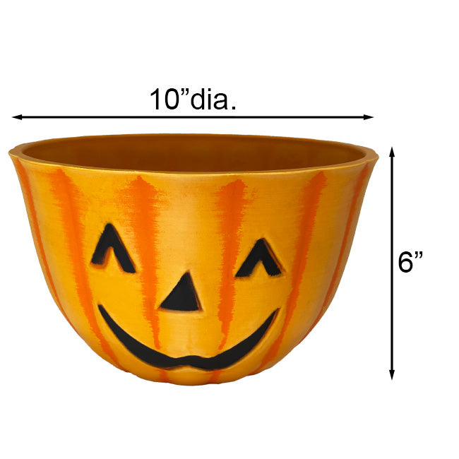 Lend a spooky, colorful flair to your garden with these Urban Gardener Jack-O-Lantern Fiber Clay Pots. Each of these spacious, 10" diameter pots will supplement your whimsical, autumnal décor, with bright orange appearances and nefarious grins complementing your thriving garden. A 6" diameter base on each pot provides support and space for plants, while deep, varied orange and yellow tones within the vertical, impressed lines lend additional texture to each item's ghoulish appearance. Four drainage holes on each lightweight, crack-resistant unit's base allow excess water to escape, and each pot may rest on virtually any flat, level surface for your convenience. These planters are made of a biodegradable, wood-based composite and are suitable for composting after seasons of service, making for a wonderfully durable and environmentally friendly addition to your garden. Bring fun and harvest fright to the corners of your flower garden with these two colorful Jack-O-Lantern Fiber Clay Pots.