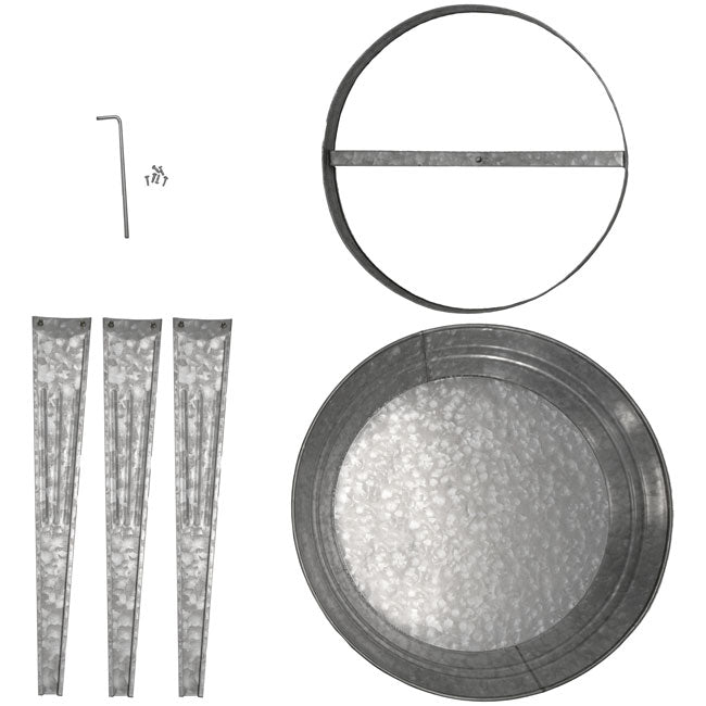 Establish a timeless and appealing birding accessory in the backyard while discouraging the presence of unwanted pests with this handy Vintage Galvanized Metal Bird Bath & Stand with Mosquito Dunks® bundle by Prime Retreat. This fantastic and convenient package gives you both a bird bath and mosquito repellent to allow you to create a stunning and pest-free bird bathing site in the garden. The included Panacea Galvanized Vintage Metal Bird Bath and Stand brings a nostalgic look to your outdoor sanctuary, with its variable gray hues and classic design letting it stand out neatly. The metal support ring attaches to an 18" diameter basin, with the sides of the bowl tapering inward to evoke a bucket shape. A rolled rim on the basin lets a variety of birds perch, and the 2" depth gives plenty of preening and bathing area for feathered friends. Prevent mosquitoes from overtaking this bird preening haven by using the included 6 Count Slow Release Mosquito Dunks®. These items, when placed on the surface of your bird bath's water, will float and offer 30 days of protection under usual environmental conditions. Growing mosquito larvae will eat the item, allowing this product to go to work as it easily eradicates the insect to give you a more peaceful waterside locale. This lets you attract a wealth of attention from birds in your outdoor spot without the headache of invasive pests. The bird bath will add radiant beauty to your deck or patio, while included anchors let you install the bath in your soil for a different type of showcase. With staunch metal construction, the bird bath will lend you an outstanding and durable accent in your yard, and the larvicidal discs allow you to enjoy it without the area being spoiled by pesky visitors. Bring a dash of farmhouse charm and create a quaint bird preening locale in your pest-free space with this Vintage Galvanized Metal Bird Bath & Stand with Mosquito Dunks® package. Bird bath assembly required. Dunks® made in the USA.