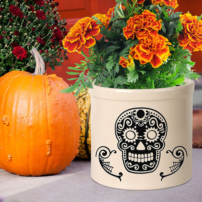 Whitehall Sugar Skull Halloween Stoneware Crock