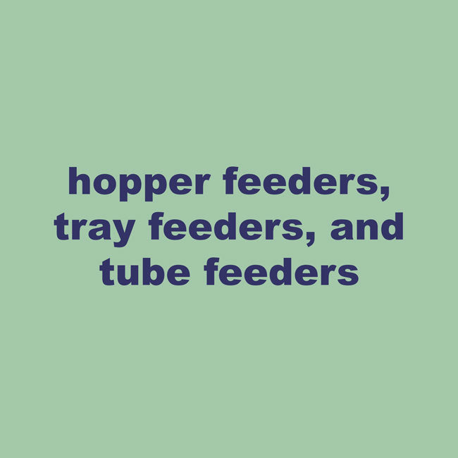 Feeder Options: hopper feeders, tray feeders, and tube feeders